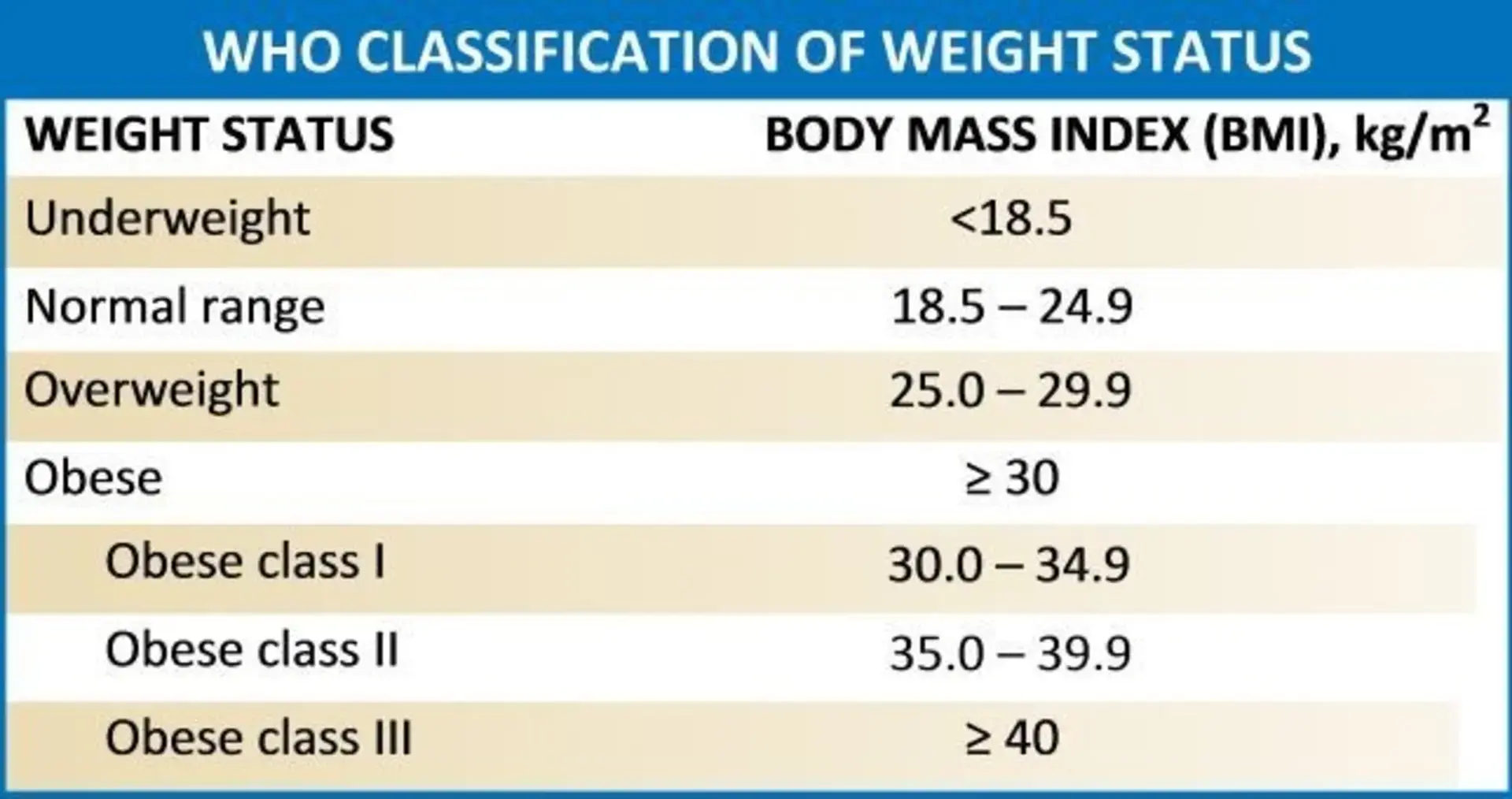 Don’t worry, you can always opt for online BMI calculators to simplify the process. Once you have that number calculated, refer to this chart below to see where you stand: