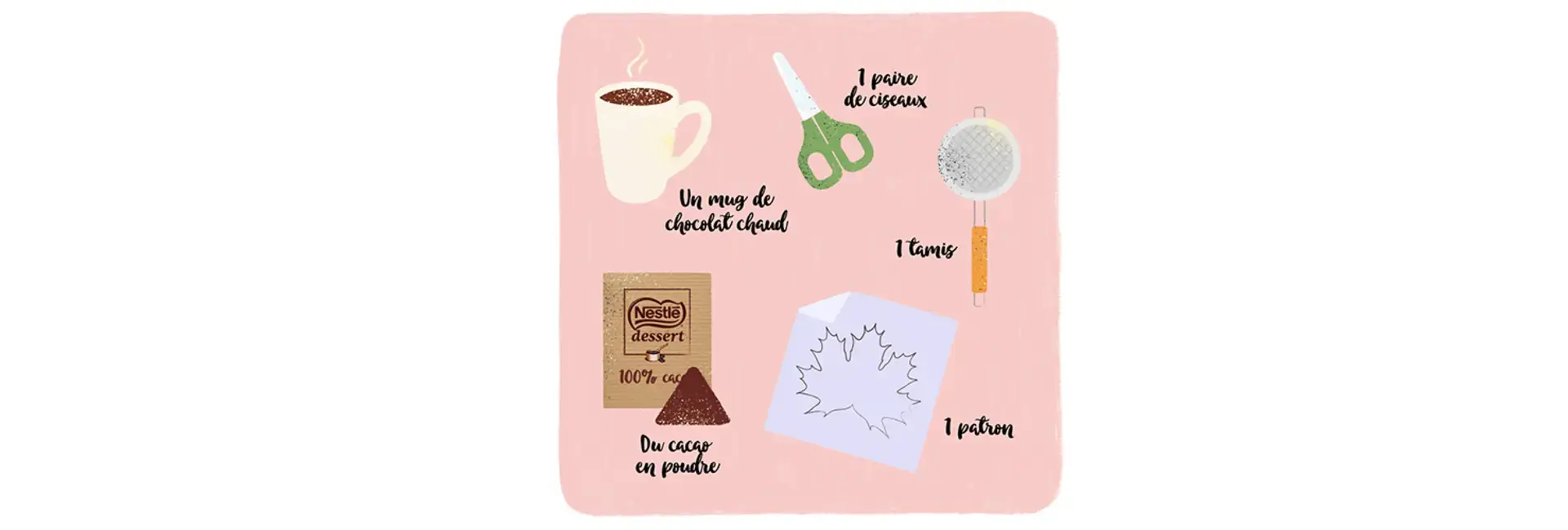 Dessiner sur votre chocolat chaud c’est très facile grâce à nos patrons ! Des ciseaux, un peu de poudre de cacao… et voilà !