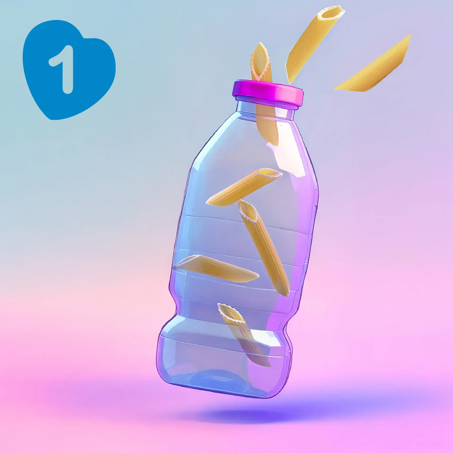 Prenez la petite bouteille, mettez les pâtes à l'intérieur.