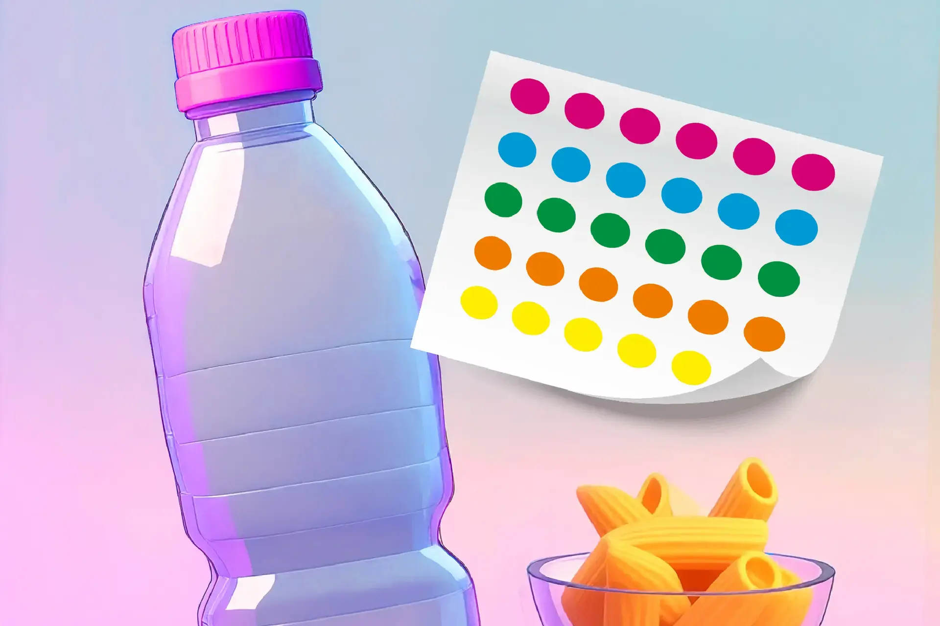*Assurez-vous que le bouchon de la bouteille soit bien fermé et que votre bébé ne mette pas à la bouche la bouteille, le bouchon et les gommettes afin d'éviter tout risque d'étouffement.