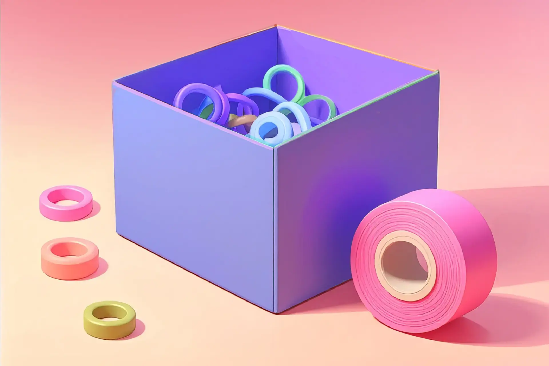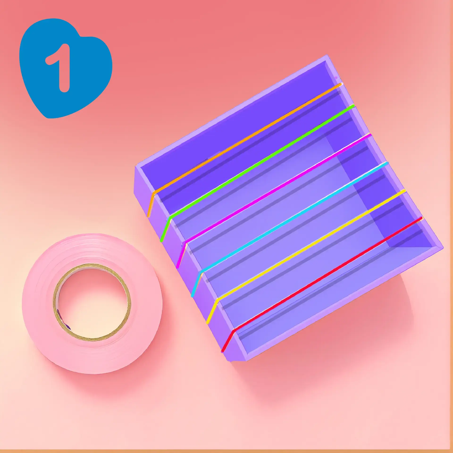 Collez du scotch au dos de la boîte pour maintenir les élastiques.