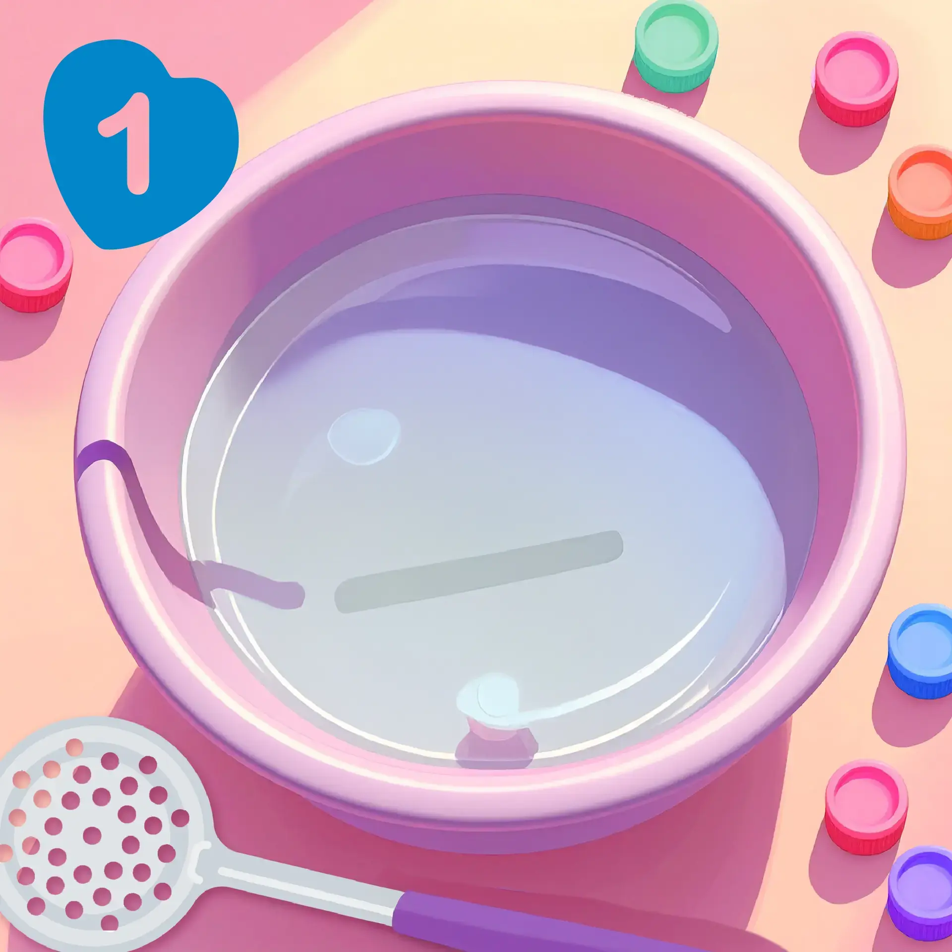 Remplissez le saladier d'eau tiède.
