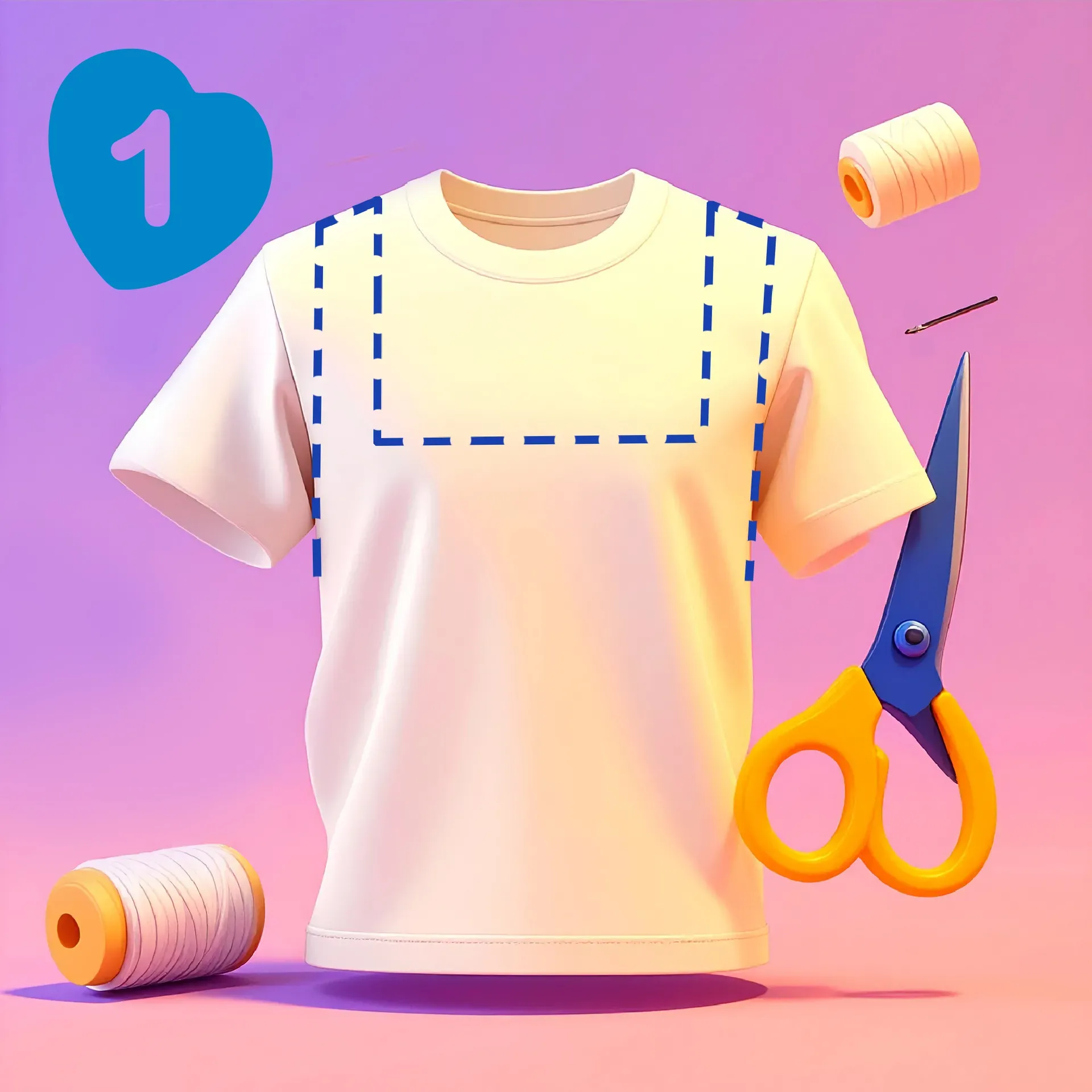 Prenez le t-shirt et découpez-le au niveau des épaules pour faire les anses de votre sac.