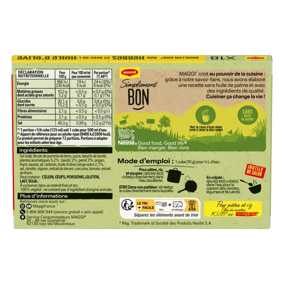 MAGGI Bouillon Kub Huile d'Olive et Herbes 18 cubes - 180g
