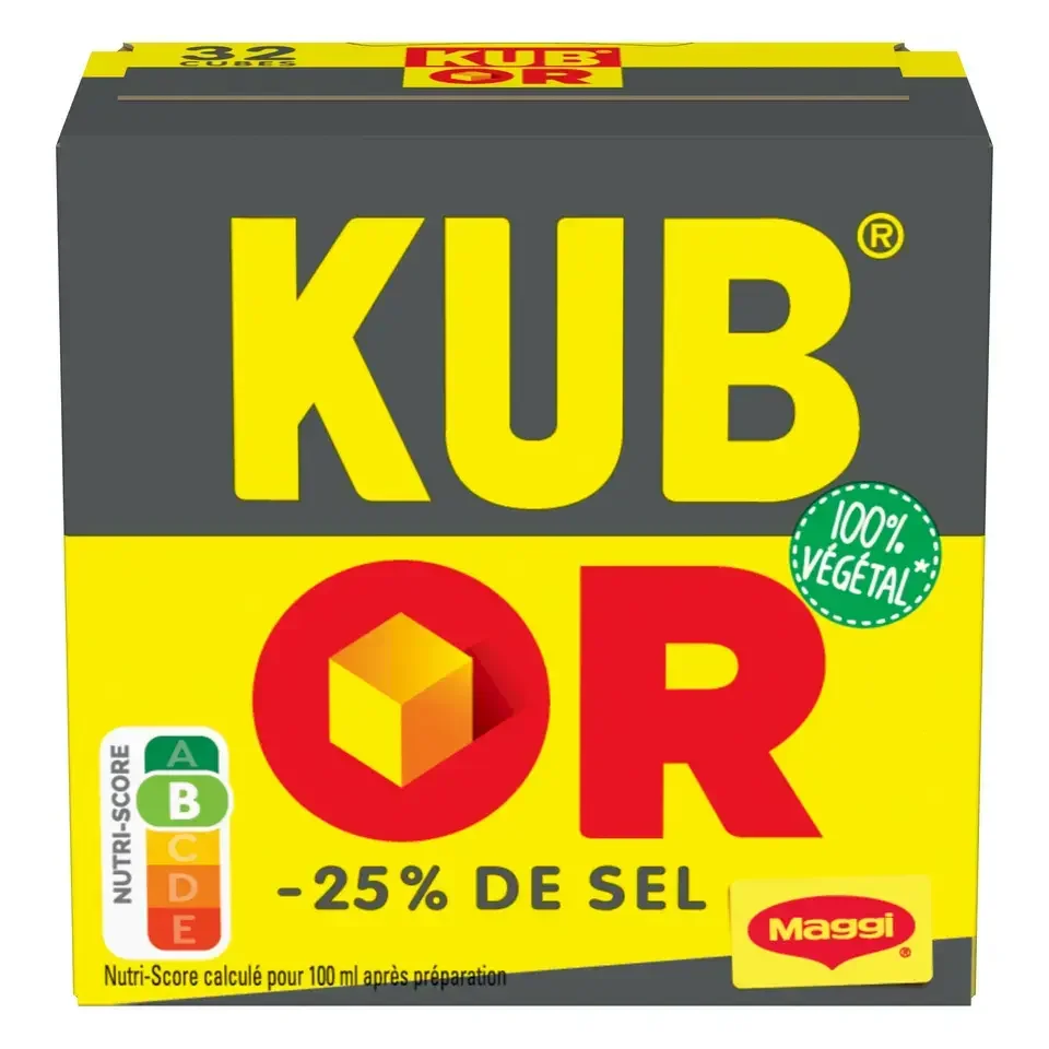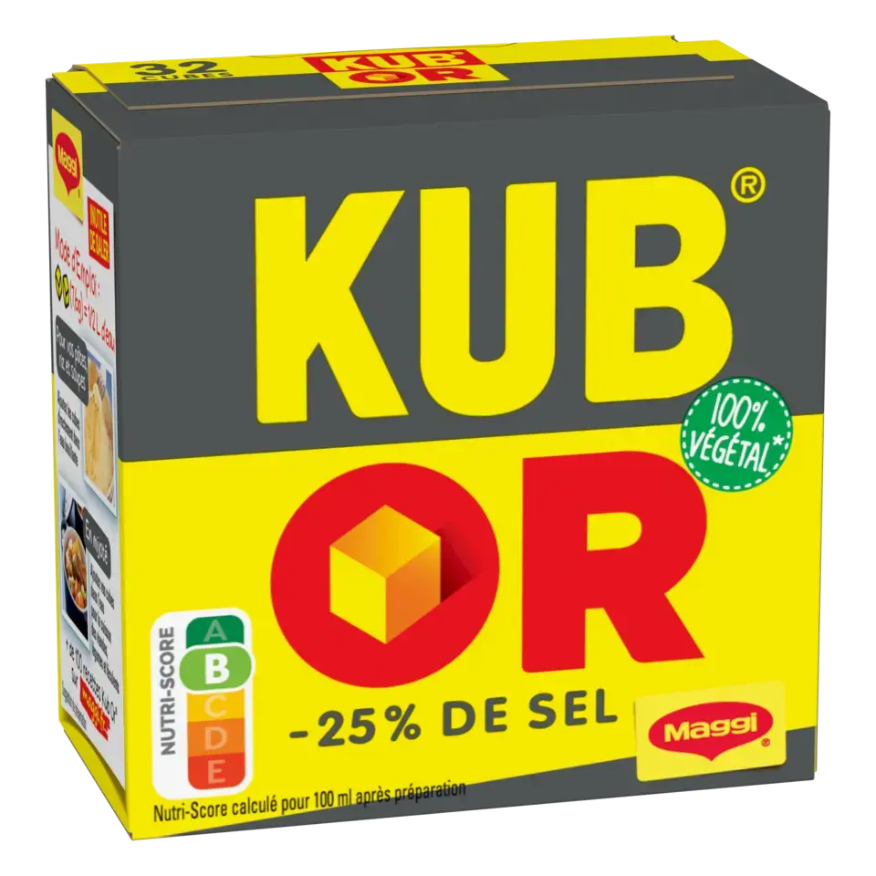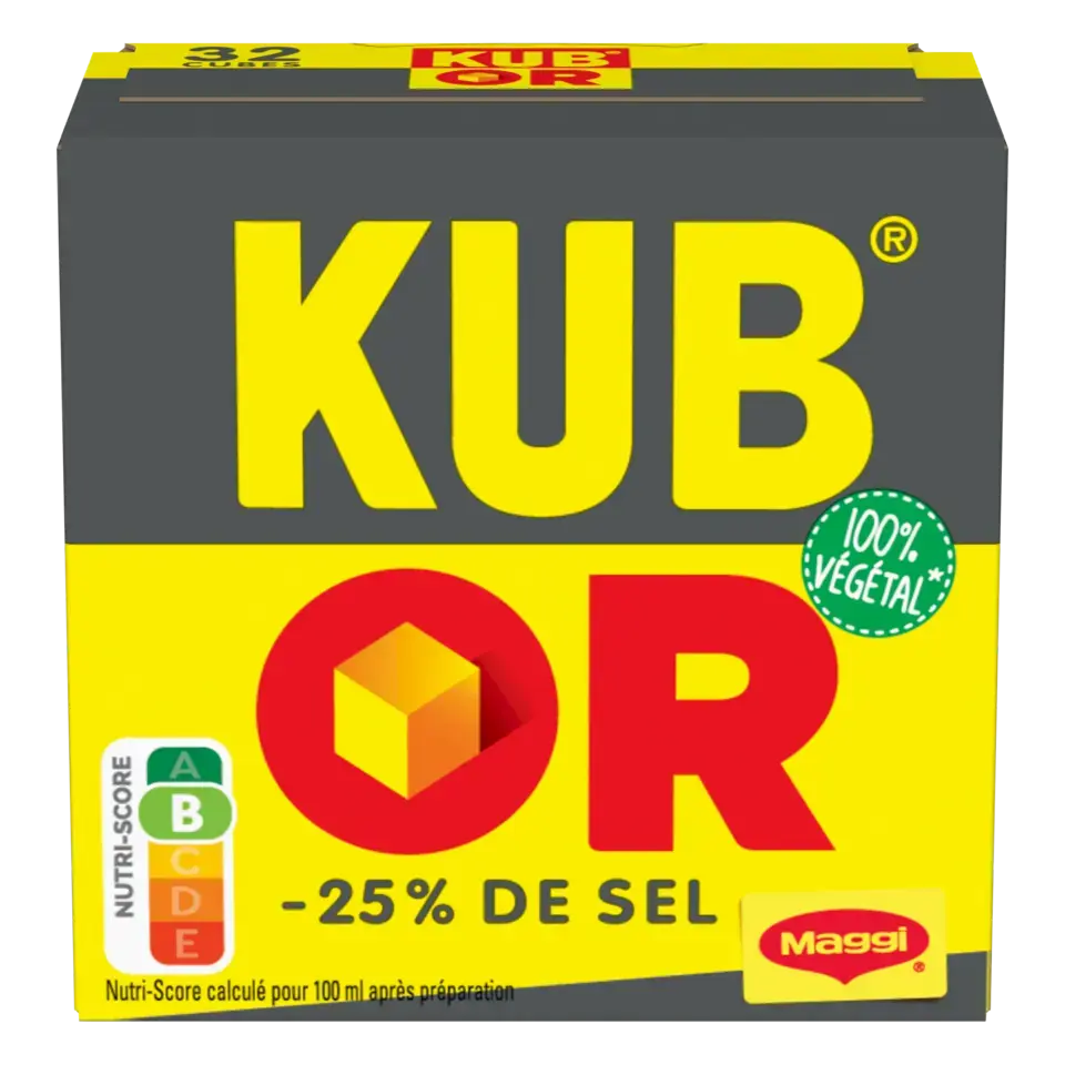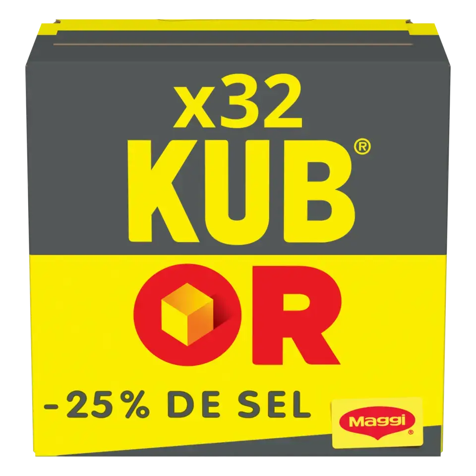 Découvrez le bouillon KUB OR réduit en sel, le goût inimitable de KUB OR de MAGGI avec 25% de sel en moins*. Il vous permettra de rehausser le goût de vos plats en limitant votre apport en sel ! Les recettes MAGGI sont développées avec soin par les chefs cuisiniers MAGGI. En s'inspirant du fait maison, ces cubes de bouillons sont élaborés à partir de viandes et/ou de légumes (selon les recettes), d'épices, d'herbes et de sel. La forme déshydratée de ces ingrédients permet une bonne conservation dans le temps des bouillons. Une fois mélangés, les ingrédients sont compressés...