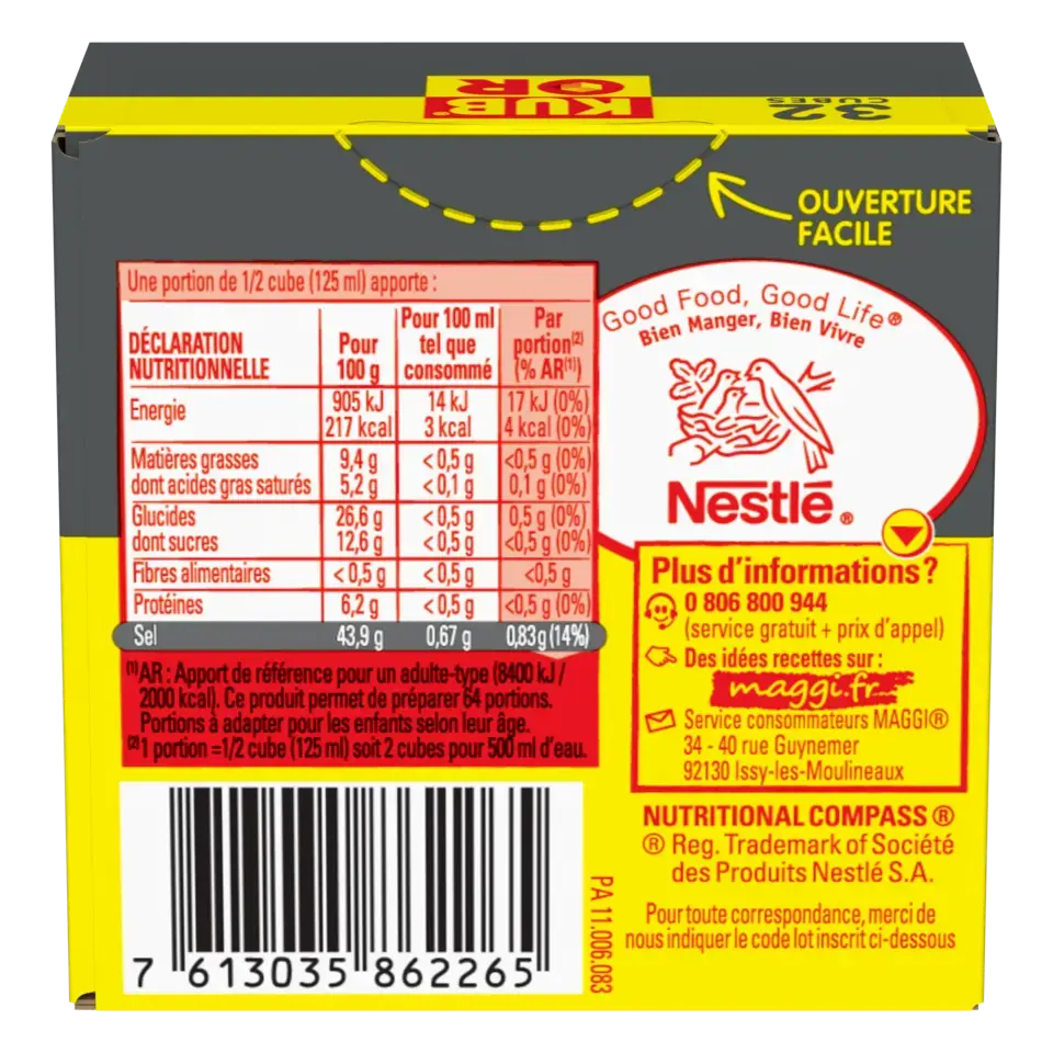 MAGGI KUB OR Bouillon Réduit en sel de -25% - 32 cubes - 121,6g