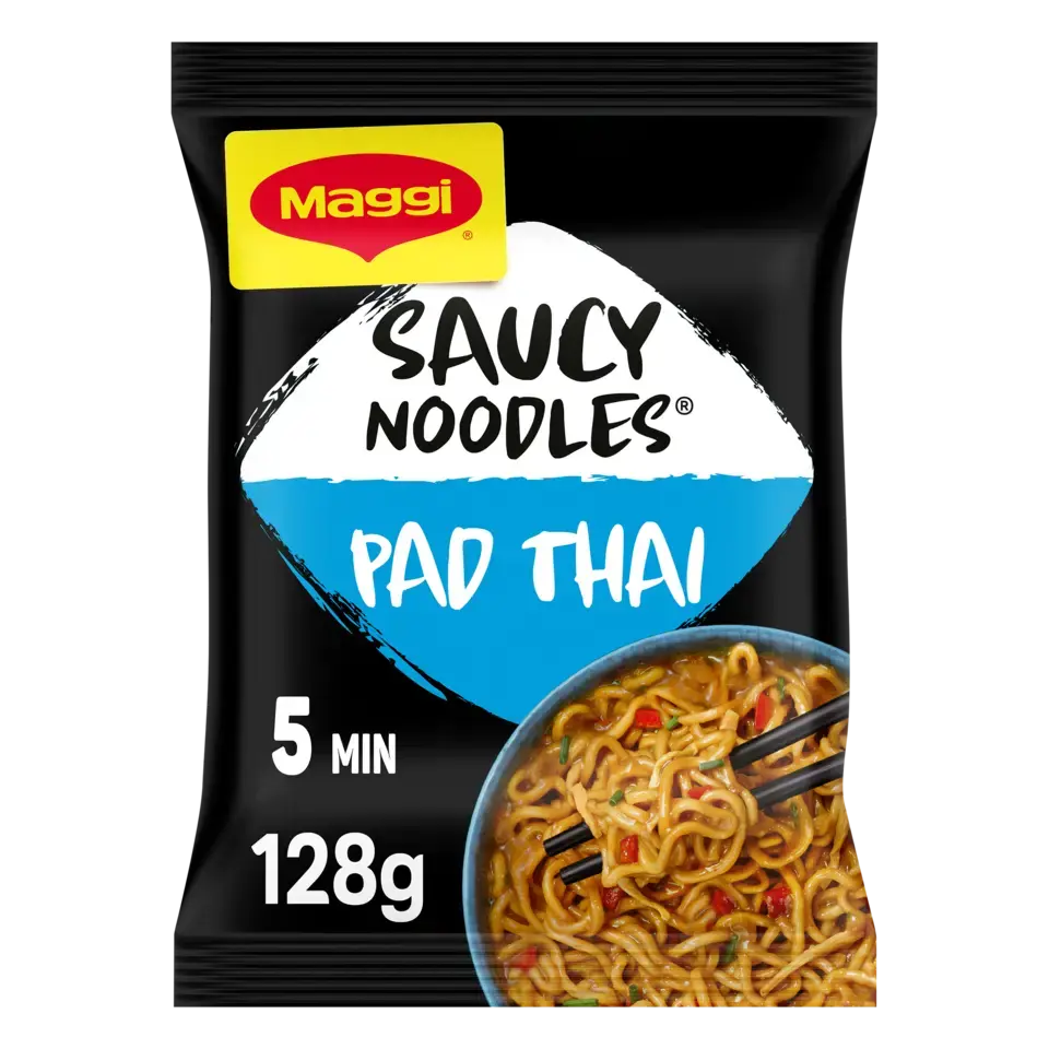 Découvrez la nouvelle gamme de nouilles instantanées SAUCY NOODLES® de MAGGI® et voyagez au travers des saveurs phares de l'Asie ! Laissez-vous tenter/porter par la générosité de nos nouilles pad thaï, sa sauce et ses petits légumes. Cette recette, à base de petits légumes et pousses de bambou, est inspirée de la tradition culinaire thaïlandaise, de ses marchés flottants et ses célèbres festivals de street food. Un plat préparé de nouilles instantanées et riche en sauce, prêt en 5 minutes et dans un format généreux.