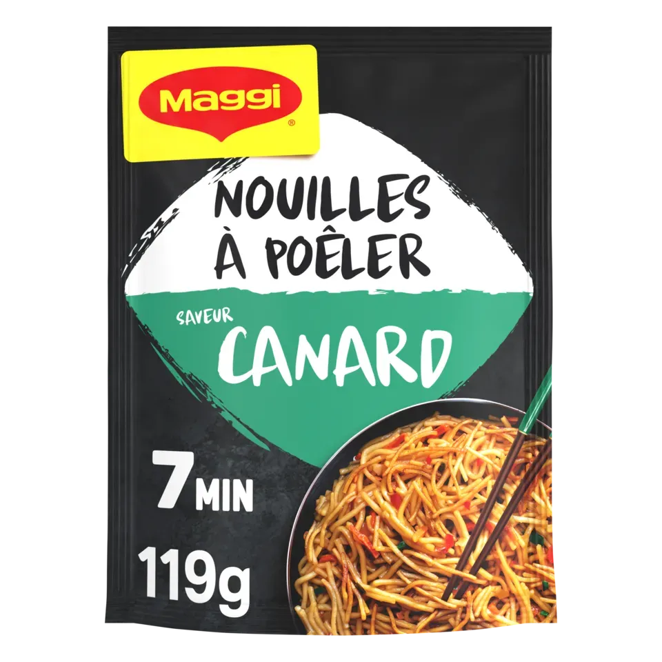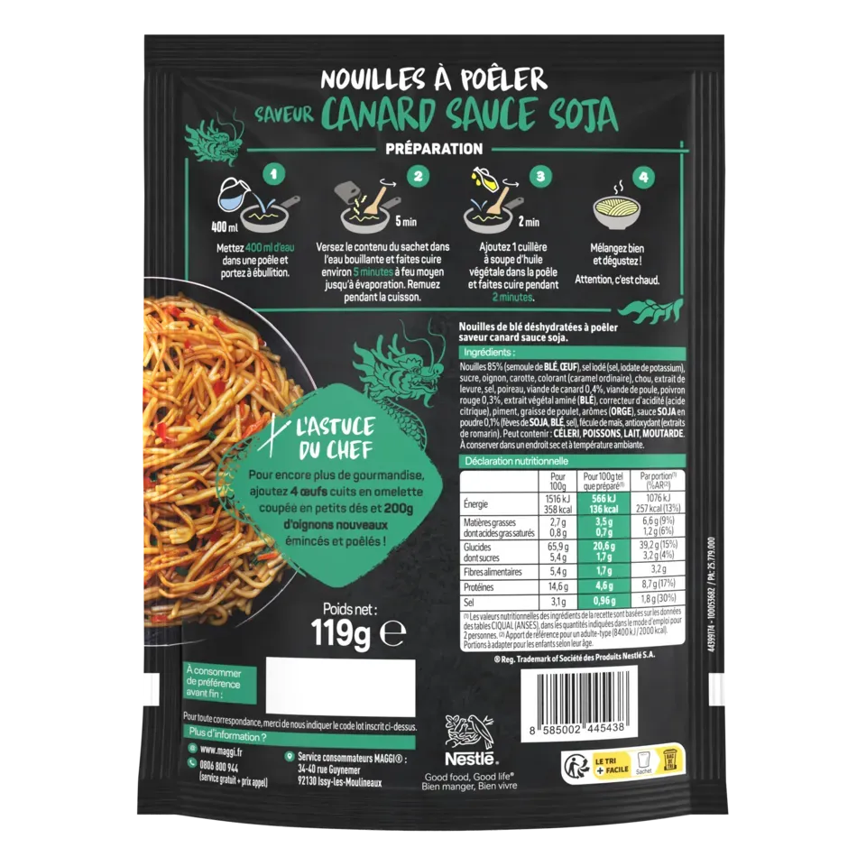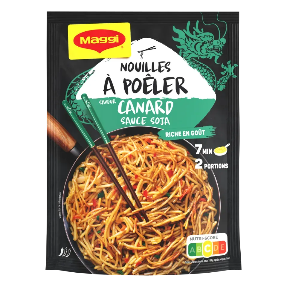 Découvrez la nouvelle gamme de nouilles à poêler MAGGI® et embarquez pour un voyage culinaire à travers les saveurs emblématiques de l’Asie ! Laissez-vous séduire par la richesse de nos nouilles saveur Canard Sauce Soja. Un plat pour 2 personnes, et prêt en seulement 7 minutes. Suggestion de recette : Pour encore plus de gourmandise, ajoutez 4 œufs cuits en omelette coupée en petits dés et 200g d’oignons nouveaux. Un délice prêt en un rien de temps ! Bon appétit !