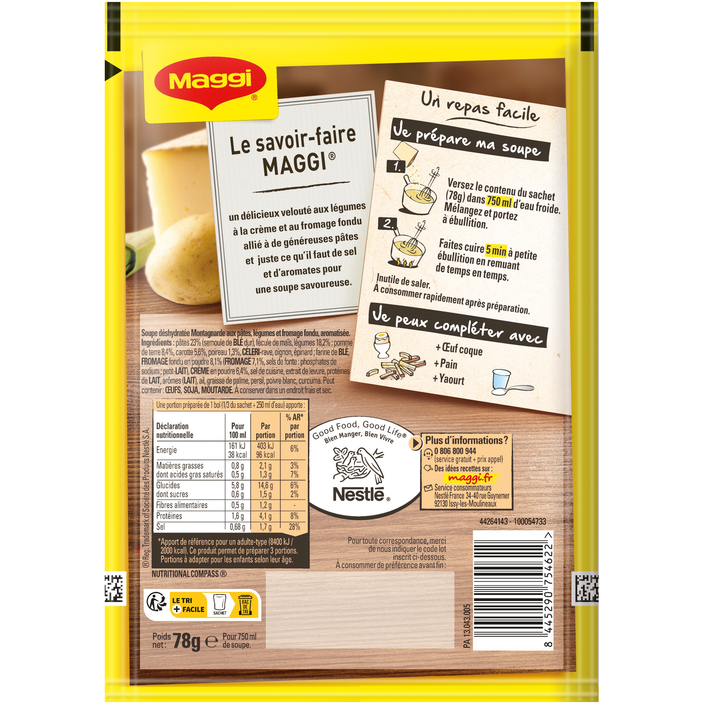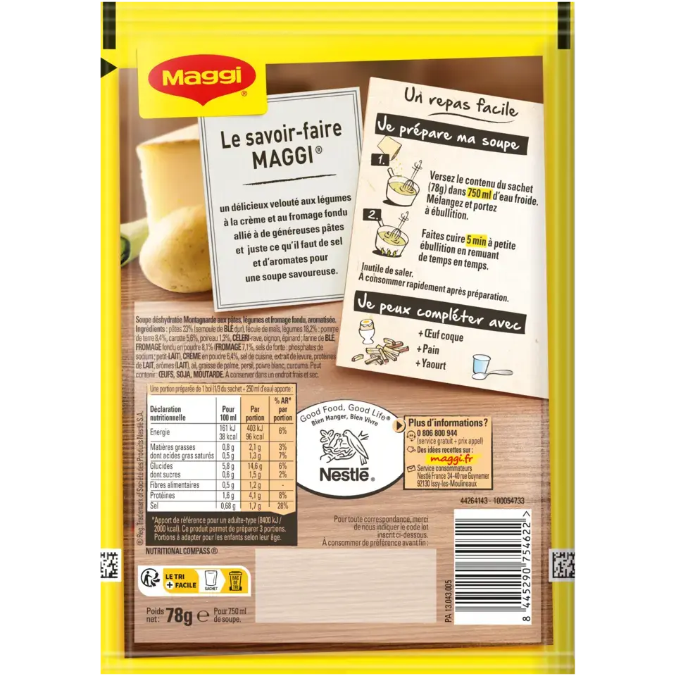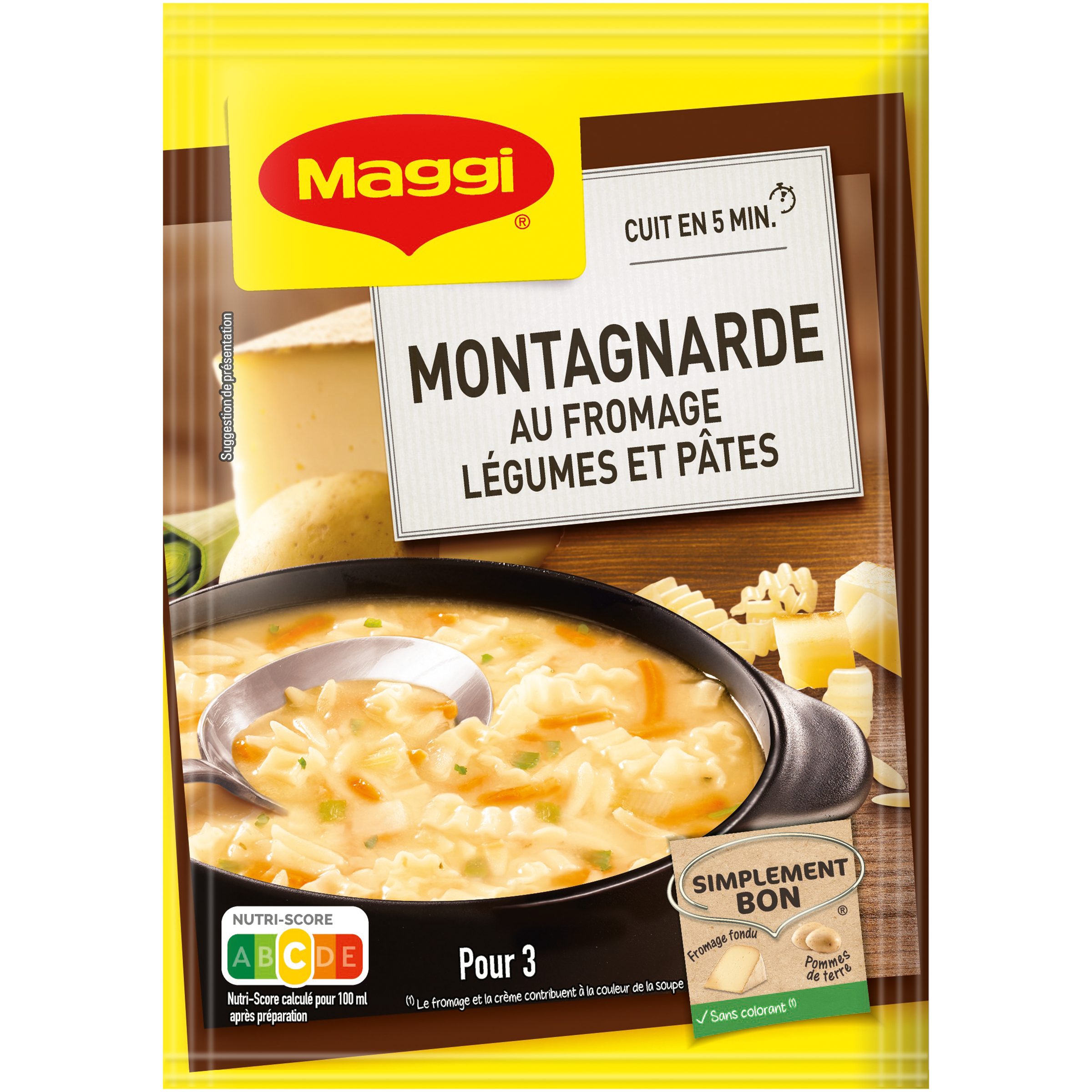 Le savoir-faire MAGGI: une délicieuse recette de velouté de légumes à la crème et au fromage, avec des petites pâtes et juste ce qu'il faut de sel et d'aromates pour une soupe savoureuse. Avec MAGGI, retrouvez tout le plaisir d'une bonne soupe cuisinée, prête en 5 minutes seulement et régalez-vous !