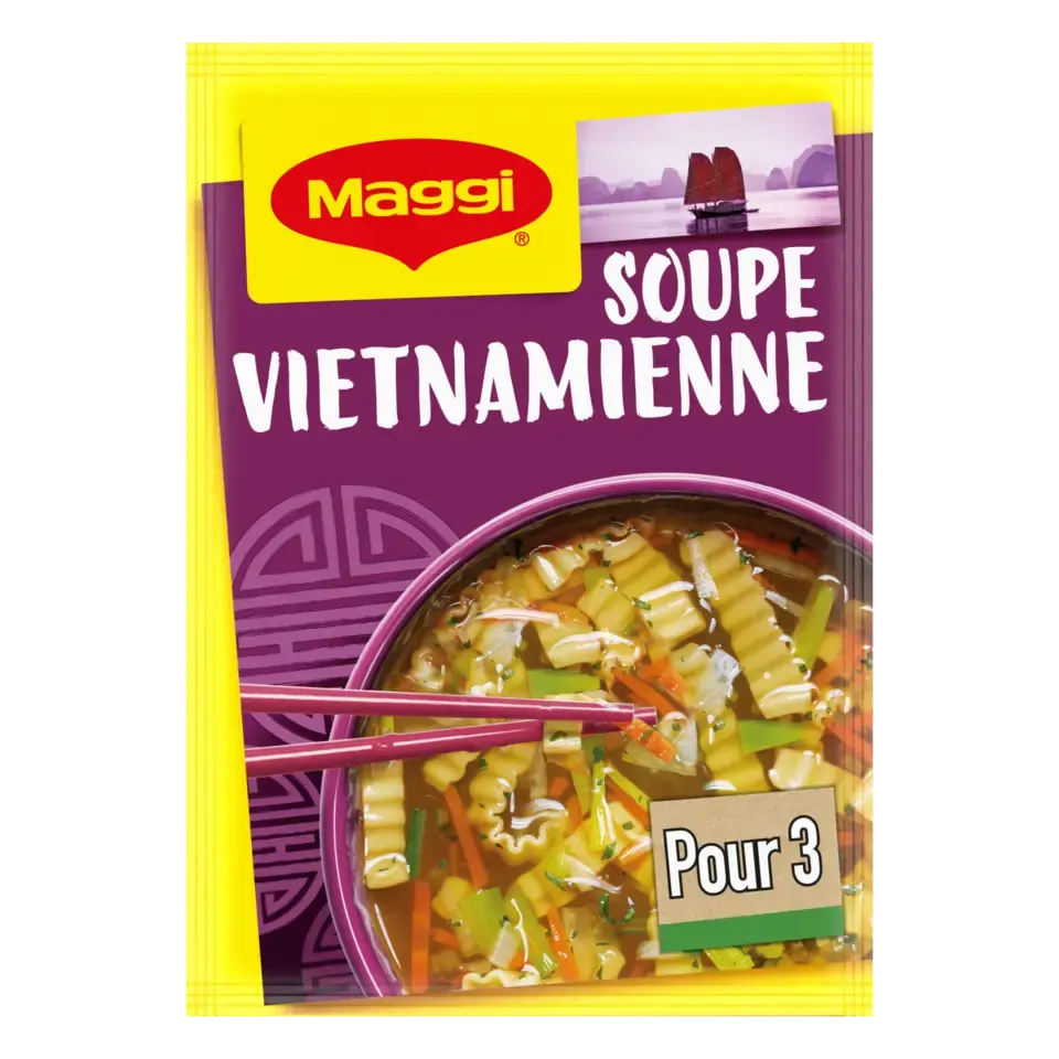 Avec ses légumes cuisinés, ses notes de gingembre et de coriandre, cette délicieuse soupe MAGGI me transporte au Vietnam avec ses paysages somptueux: Hanoi, la Baie d'Halong, … Avec MAGGI, retrouvez tout le plaisir d'une bonne soupe exotique prête en 5 minutes et régalez vous !