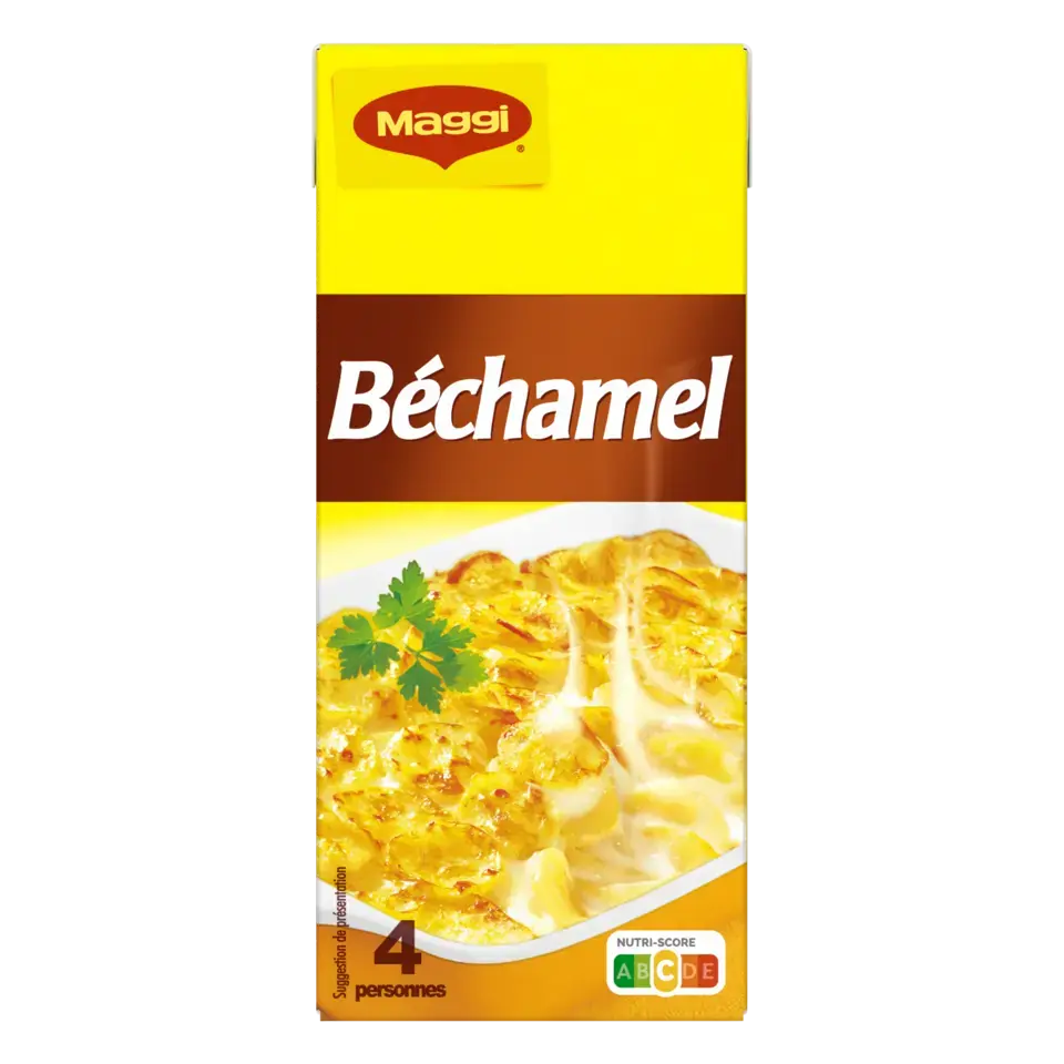 Découvrez la sauce liquide Béchamel de MAGGI, l'atout indispensable pour sublimer vos gratins, pâtes ou lasagnes ! Prête en un clin d'œil, cette sauce onctueuse et justement assaisonnée apporte un goût intense à vos plats. Sa conservation dans une brique UHT permet de préserver toutes ses saveurs pour votre plus grand plaisir. En plus, elle contient 91% de lait !
