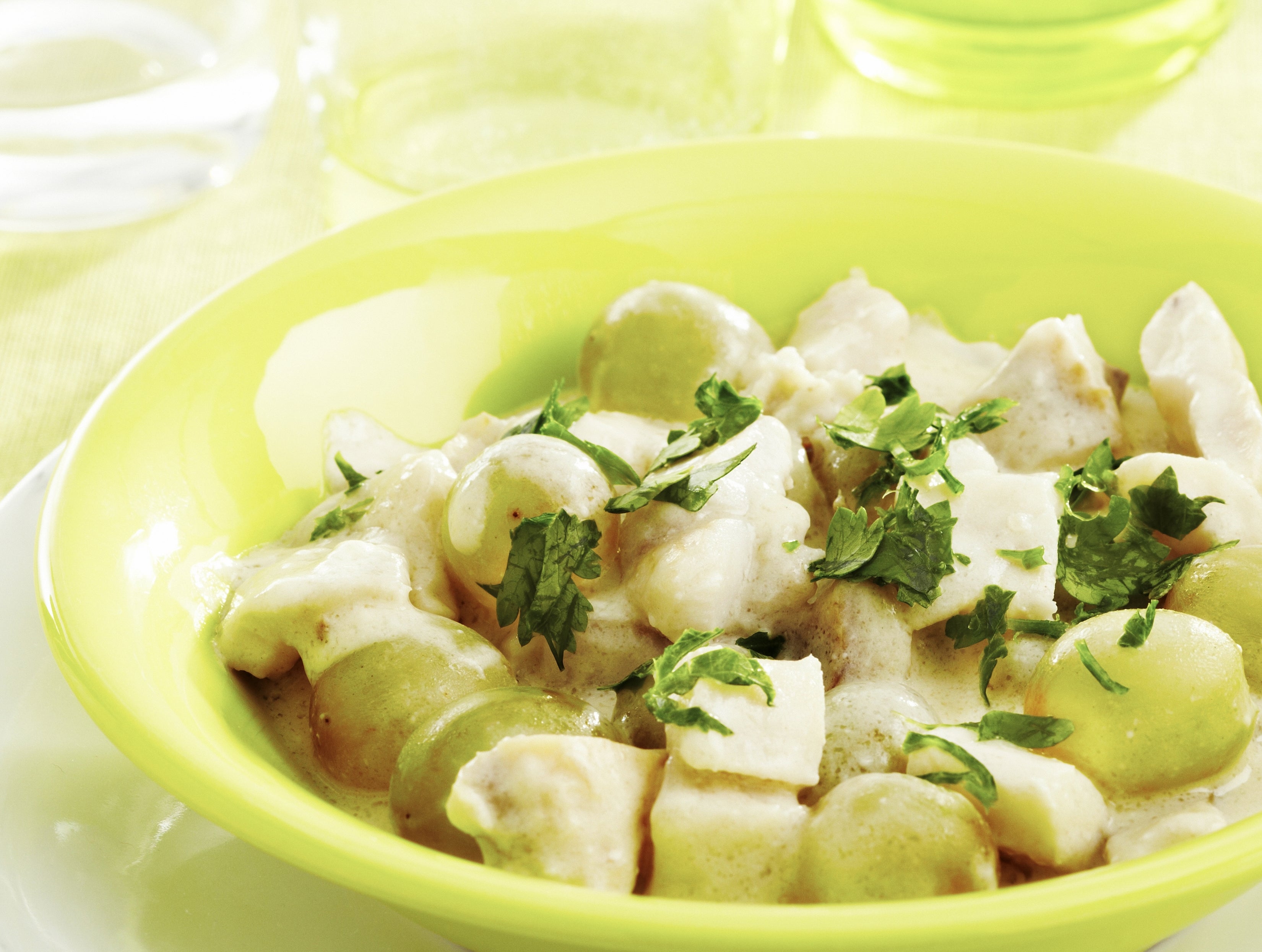 Servez avec une timbale de riz nature, le tout saupoudré de pignons de pin grillés et de pluches de cerfeuil.