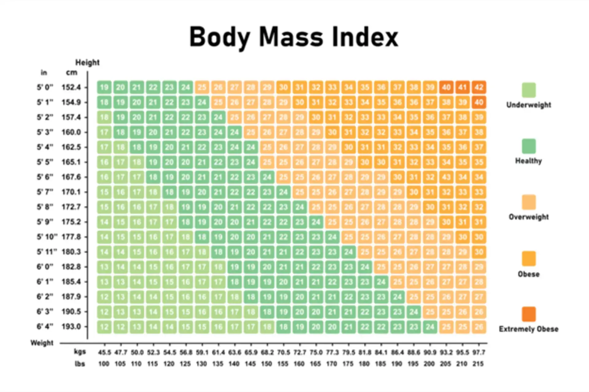 Want to get a good feel of your current body’s fitness state? Check where you land on the BMI chart. The Body Mass Index, or BMI, is a handy tool to know if you’re over or under the recommended weight in relation to your height. Here’s what a BMI chart looks like: