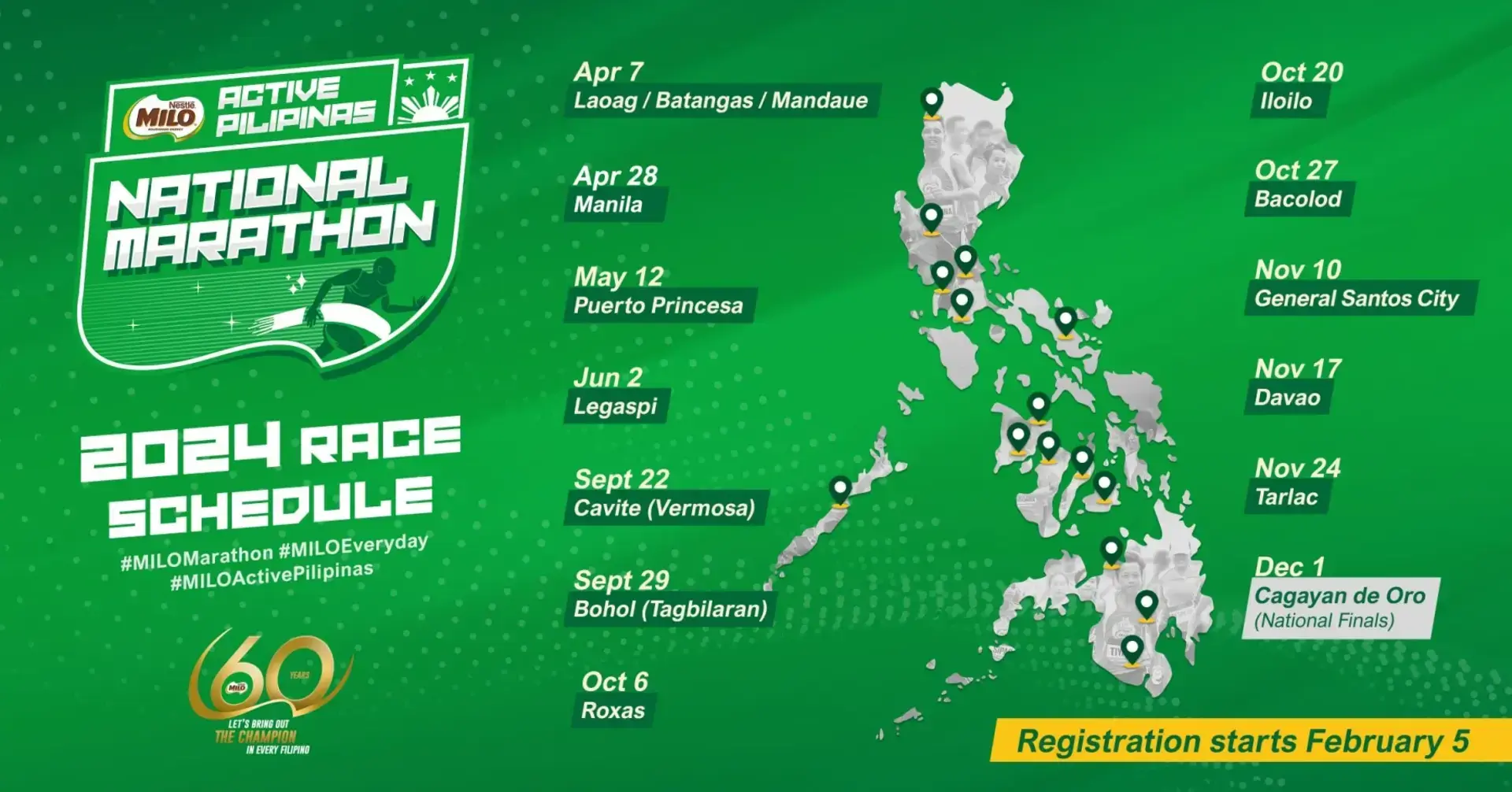 Registration opens February 5, 2024! Log on to https://nes.tl/ygzosy to sign up and be a part of this historic event. Bring your family with you, and don't miss out on this incredible opportunity to be a part of the MILO Marathon 2024. Start your Champion journey today!