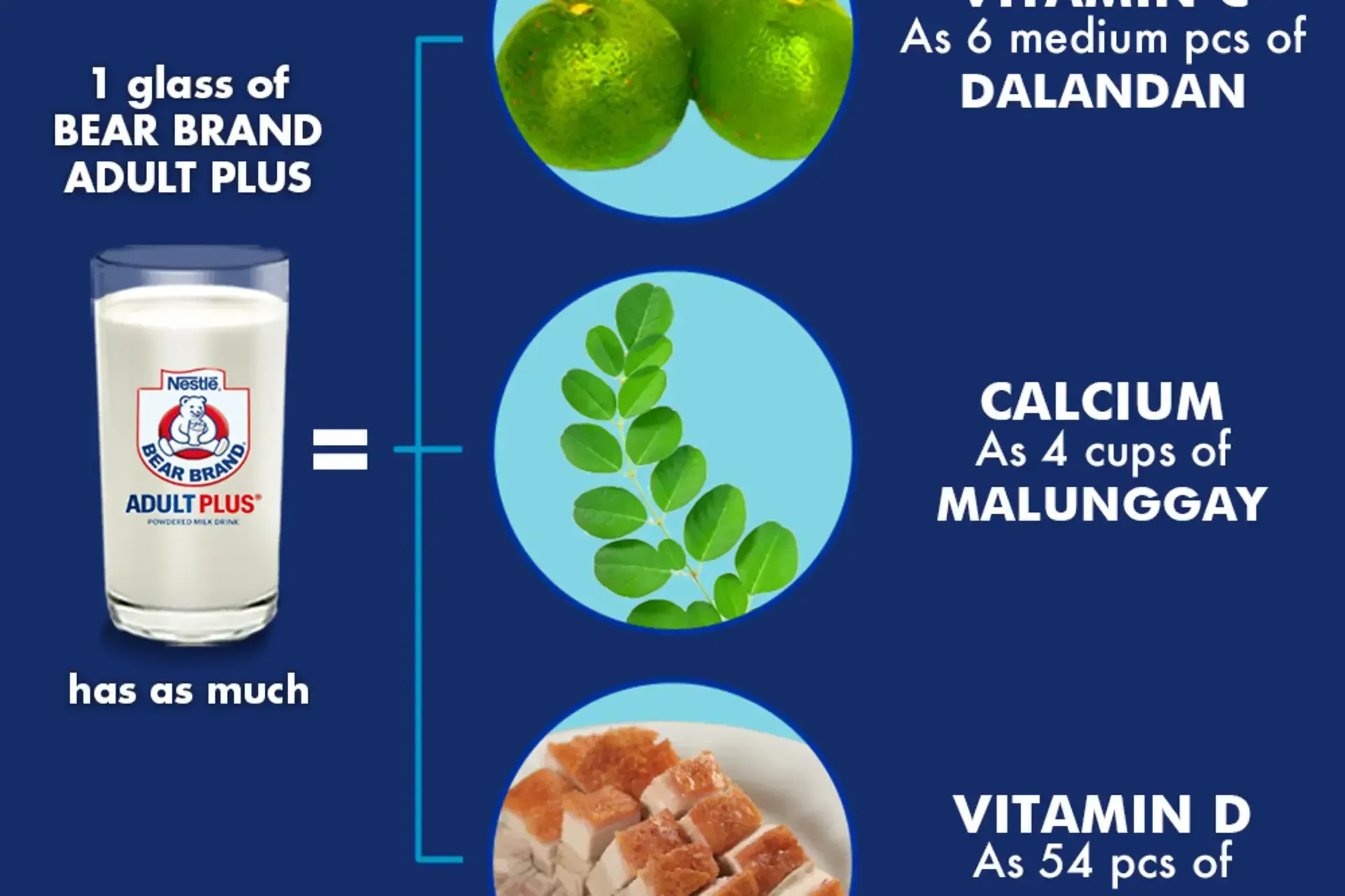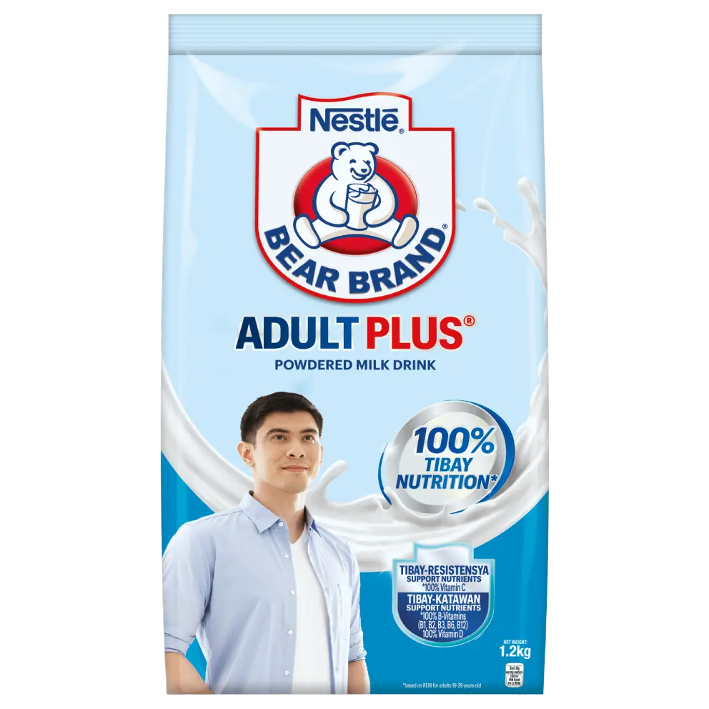 Iba ang nutritional needs ng mga adults sa mga bata. Ayon sa DOST-FNRI., 9 out of 10 adults ay may inadequate Calcium intake at 5 out of 10 adults ay kulang sa Vitamin D. Ang BEAR BRAND Adult Plus ay formulated para ma-meet ang 100% of adults' daily nutritional needs.