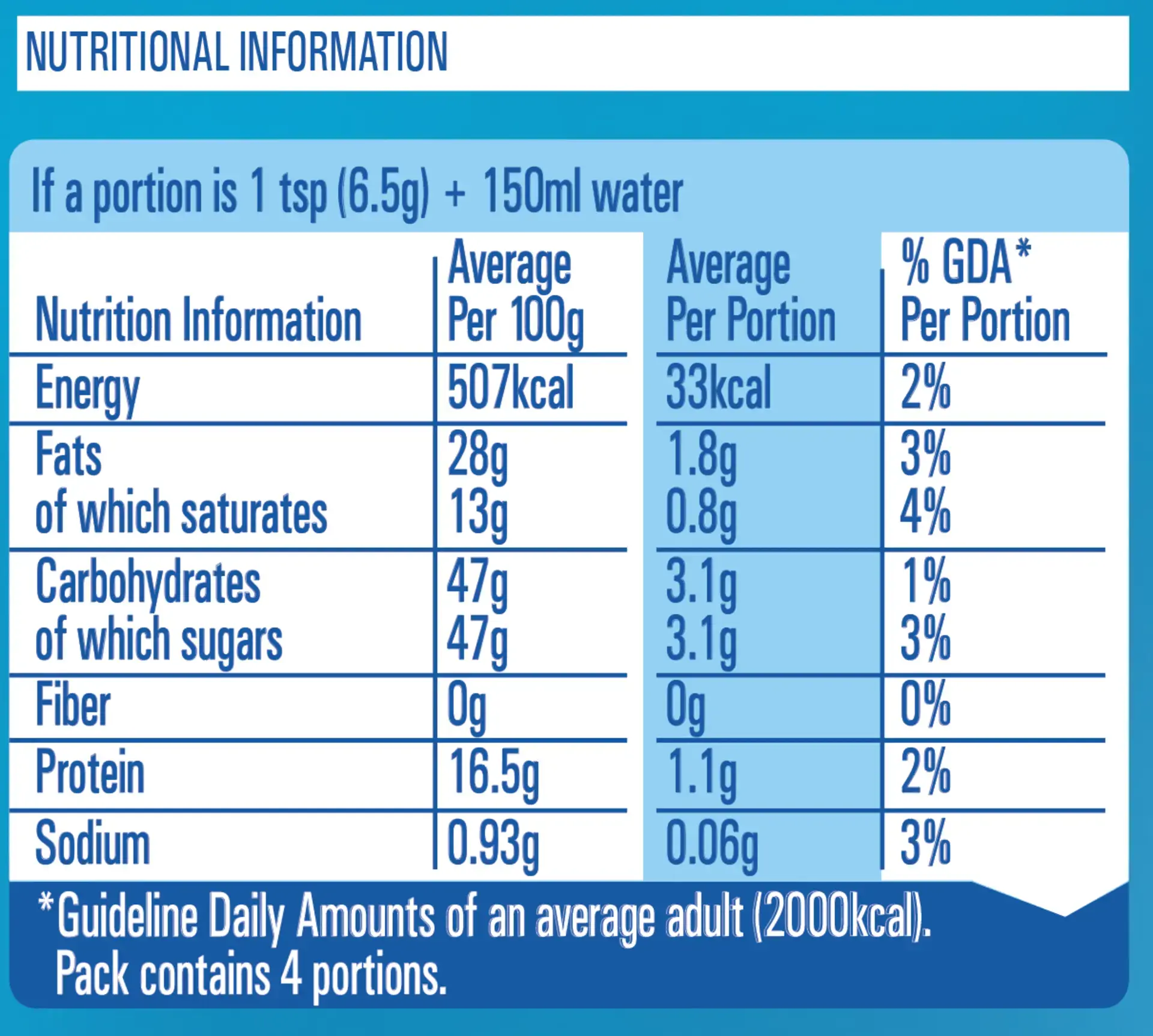 | Fats | 0.05g | - |