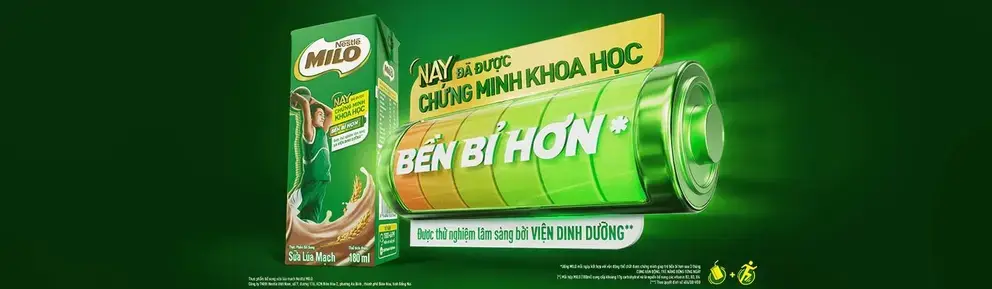Nestlé MILO – nhãn hàng sữa lúa mạch được mẹ tin dùng – đã được chứng minh khoa học theo nghiên cứu lâm sàng từ Viện Dinh Dưỡng* giúp trẻ bền bỉ hơn mỗi ngày.