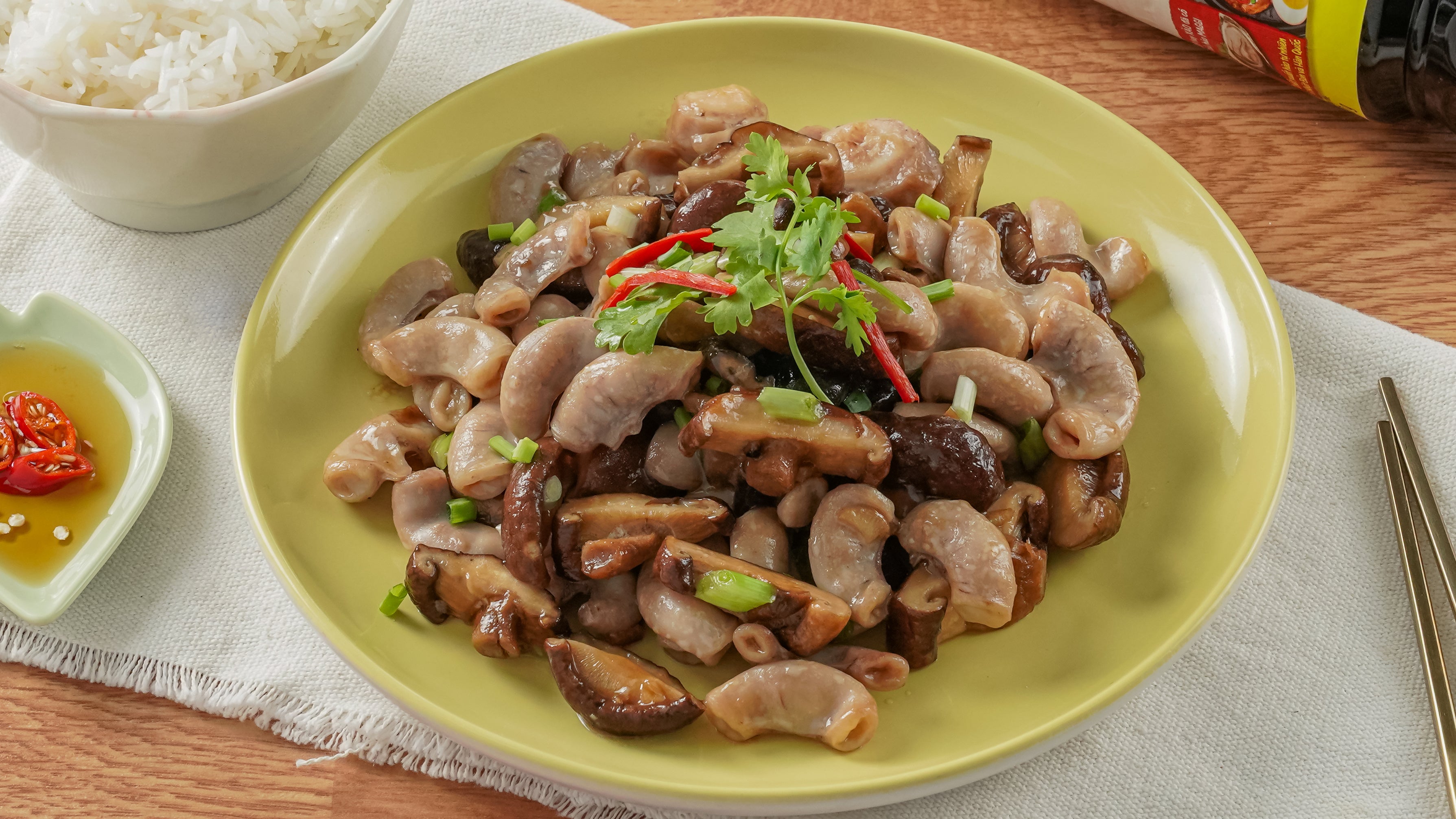 Dồi Trường Xào Nấm Đông Cô