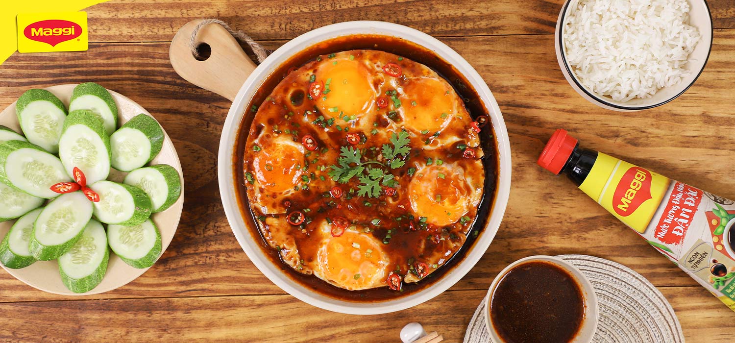 MAGGI tin sốt tương ngon sẽ khiến mọi món quen thêm phần lạ vị, tạo nên phong cách của riêng bạn. Vào bếp trổ tài Trứng Chiên Rim Nước Tương ngay nhé!